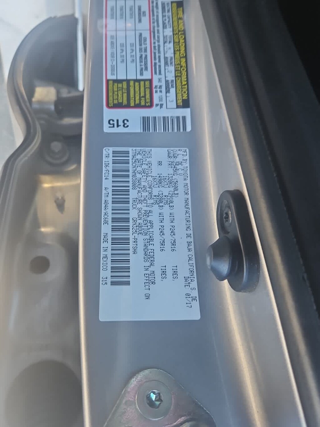 Lithia Ford and Lincoln of Fresno is pleased to offer this Silver Sky Metallic 2017 Toyota Tacoma SR5 for purchase, this vehicle is well equipped with many features including: Tow Package (130 Amp Alternator, ATF Cooler, Class IV Hitch Receiver, Engine Oil Cooler, Power Steering Cooler, and Trailer Sway Control), 16 Silver Alloy Wheels, 5 Chrome Oval Tube Steps, 6 Speakers, ABS brakes, Air Conditioning, Alloy wheels, AM/FM radio: SiriusXM, Anti-whiplash front head restraints, Auto-dimming Rear-View mirror, Axle Ratio: 3.91, Brake assist, Bumpers: body-color, CD player, Compass, Driver door bin, Dual front impact airbags, Dual front side impact airbags, Electronic Stability Control, Exterior Parking Camera Rear, Fabric Seat Trim (FC), Front anti-roll bar, Front Bucket Seats, Front Center Armrest, Front fog lights, Front reading lights, Front wheel independent suspension, Illuminated entry, Knee airbag, Low tire pressure warning, Occupant sensing airbag, Outside temperature display, Overhead airbag, Overhead console, Panic alarm, Passenger door bin, Power door mirrors, Power steering, Power windows, Radio: Entune Plus AM/FM/CD w/Connected Navigation, Rear step bumper, Remote keyless entry, Speed control, Speed-sensing steering, Split folding rear seat, Steering wheel mounted audio controls, Tachometer, Telescoping steering wheel, Tilt steering wheel, Traction control, Trip computer, and Variably intermittent wipers. RWD V6 6-Speed Automatic SR5 V6