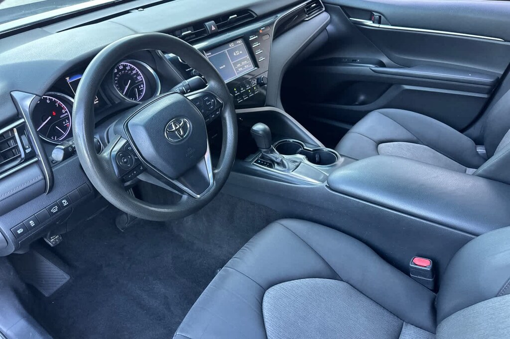 Lithia Ford and Lincoln of Fresno is pleased to offer this Predawn Gray Mica 2019 Toyota Camry LE for purchase, this vehicle is well equipped with many features including: Black w/Fabric Seat Trim, ABS brakes, Active Cruise Control, Alloy wheels, Electronic Stability Control, Illuminated entry, Low tire pressure warning, Navigation System, Remote keyless entry, Traction control, 4-Wheel Disc Brakes, 6 Speakers, 7.5J x 17 Alloy Wheels, Air Conditioning, AM/FM radio, Apple CarPlay, Auto High-beam Headlights, Brake assist, Bumpers: body-color, Delay-off headlights, Driver door bin, Driver vanity mirror, Dual front impact airbags, Dual front side impact airbags, Emergency communication system: Safety Connect, Exterior Parking Camera Rear, Fabric Seat Trim, Four wheel independent suspension, Front anti-roll bar, Front Bucket Seats, Front Center Armrest, Front reading lights, Fully automatic headlights, Knee airbag, Occupant sensing airbag, Outside temperature display, Overhead airbag, Overhead console, Panic alarm, Passenger door bin, Passenger vanity mirror, Power door mirrors, Power driver seat, Power steering, Power windows, Radio data system, Radio: Entune 3.0 Audio w/App Suite, Rear anti-roll bar, Rear reading lights, Rear seat center armrest, Rear side impact airbag, Rear window defroster, Security system, Speed control, Speed-sensing steering, Split folding rear seat, Steering wheel mounted audio controls, Tachometer, Telescoping steering wheel, Tilt steering wheel, Trip computer, and Variably intermittent wipers. FWD 2.5L I4 DOHC 16V 8-Speed Automatic LE