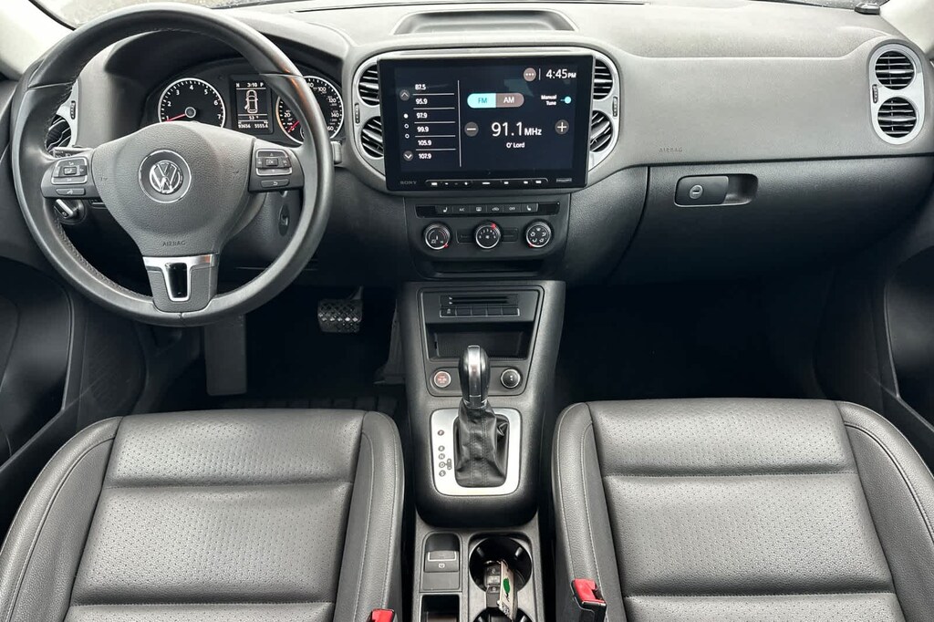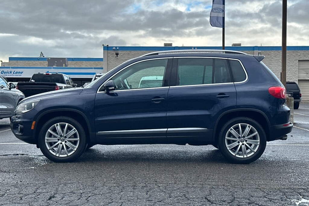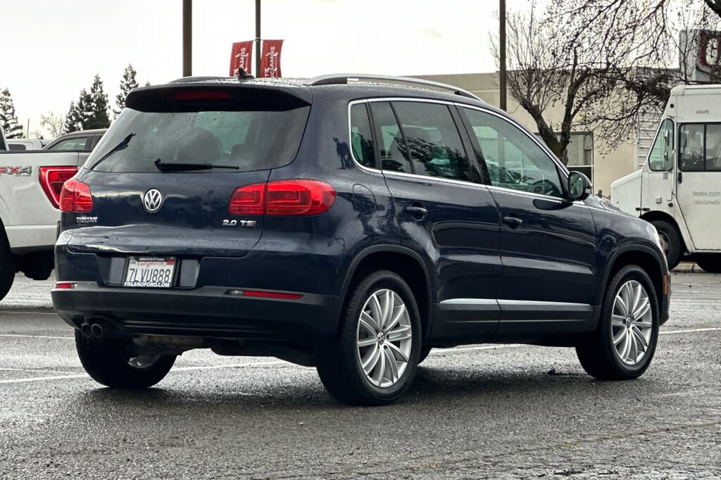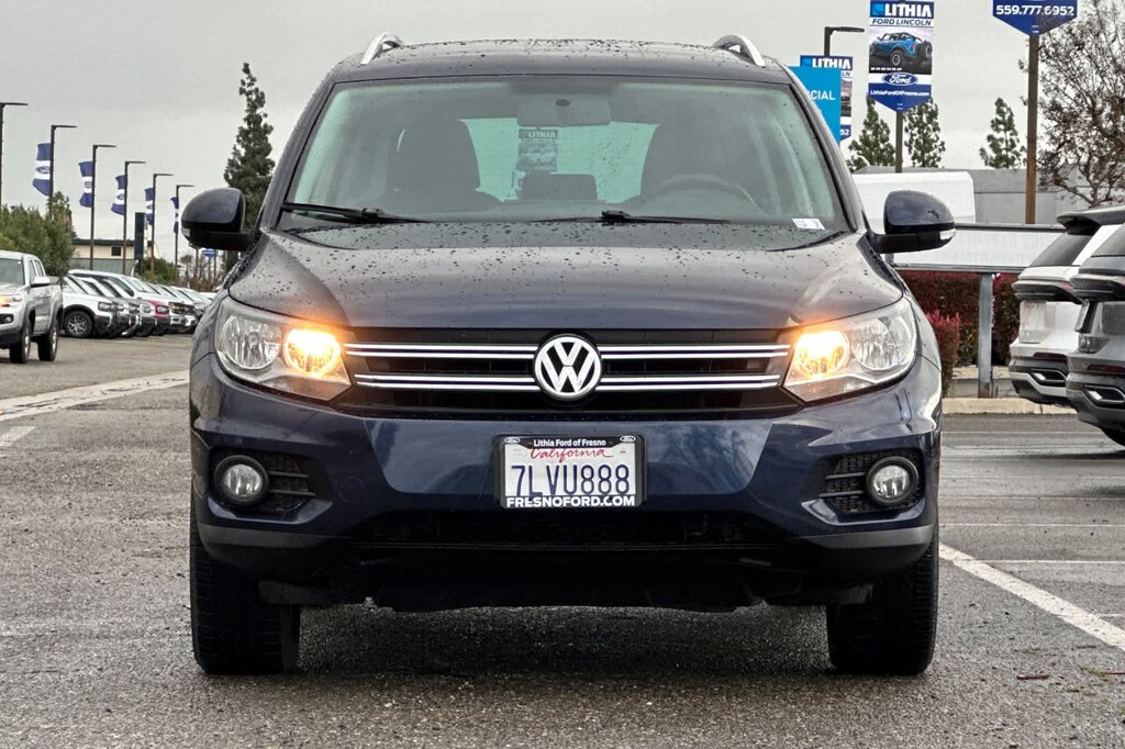 Lithia Ford and Lincoln of Fresno is pleased to offer this Night Blue Metallic 2014 Volkswagen Tiguan for purchase, this vehicle is well equipped with many features including: 8 Speakers, Air Conditioning, Power steering, Power windows, 3.45 Axle Ratio, 4-Wheel Disc Brakes, ABS brakes, Alloy wheels, AM/FM radio, Brake assist, Bumpers: body-color, CD player, Cloth Seating Surfaces, Driver door bin, Driver vanity mirror, Dual front impact airbags, Dual front side impact airbags, Electronic Stability Control, Four wheel independent suspension, Front anti-roll bar, Front Bucket Seats, Front Center Armrest, Front reading lights, Heated door mirrors, Illuminated entry, Leather Shift Knob, Leather steering wheel, Low tire pressure warning, Occupant sensing airbag, Outside temperature display, Overhead airbag, Overhead console, Panic alarm, Passenger door bin, Passenger vanity mirror, Power door mirrors, Radio: RCD310 w/Single CD, Rear anti-roll bar, Rear reading lights, Rear seat center armrest, Rear window defroster, Rear window wiper, Remote keyless entry, Security system, Speed control, Speed-sensing steering, Split folding rear seat, Spoiler, Steering wheel mounted audio controls, Tachometer, Telescoping steering wheel, Tilt steering wheel, Traction control, Trip computer, Turn signal indicator mirrors, Variably intermittent wipers, and Wheels: 16 Portland Alloy. FWD 2.0L TSI 6-Speed Automatic with Tiptronic
